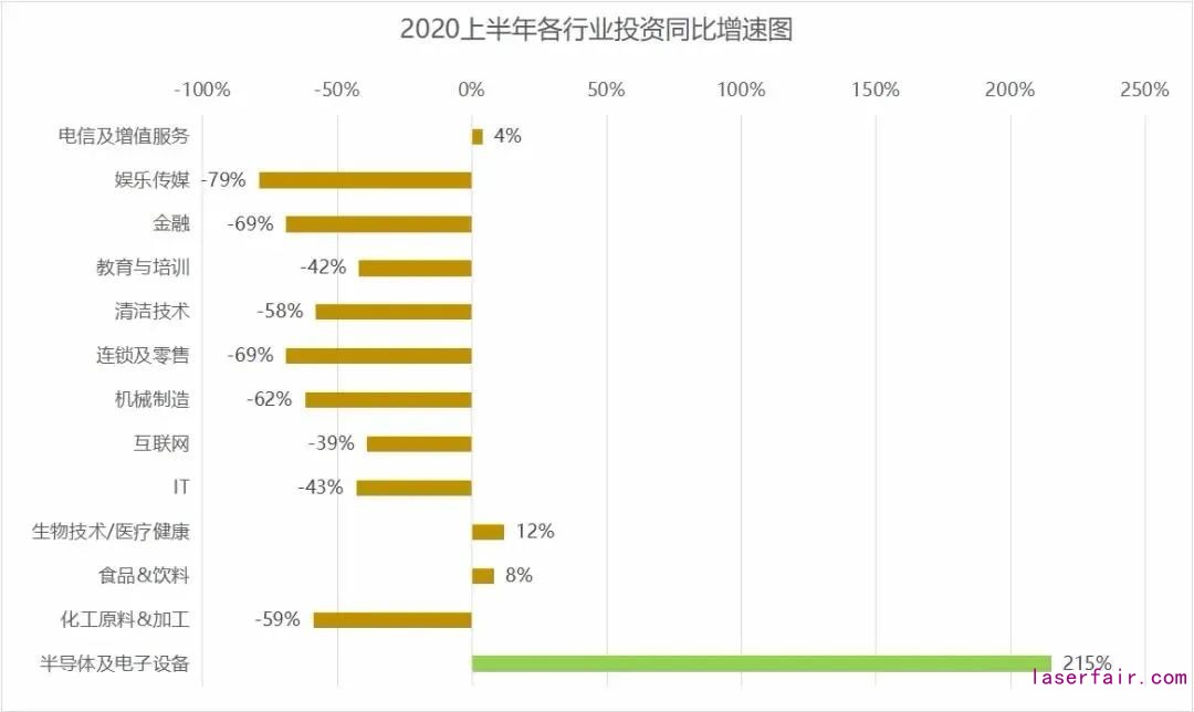 2020年上半年,半導(dǎo)體產(chǎn)業(yè)已經(jīng)位居各行業(yè)投資同比增速之首,達(dá)到驚人的215%。