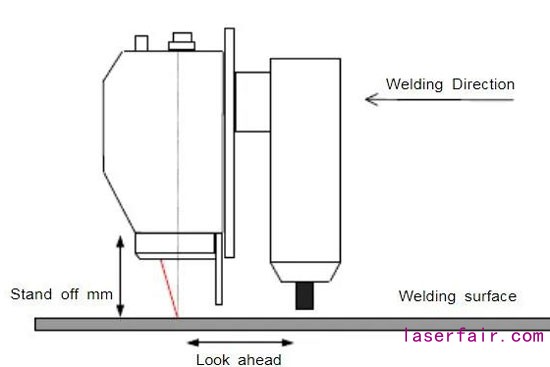傳感器通常以預(yù)先設(shè)定的距離(超前)安裝在焊槍前部,因此它可以觀察焊縫。傳感器本體到工件的距離也就是安裝高度取決于所安裝的傳感器型號(hào)。當(dāng)焊槍在焊縫上方正確的定位后,焊縫應(yīng)該接近條紋的中心,這才能使得攝像機(jī)觀察到激光條紋和焊縫。