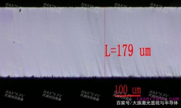 大族光伏裝備的無損激光劃裂設(shè)備適用于156mm×156mm-230mm×230mm電池片。該加工技術(shù)采用應(yīng)力切割原理,不存在激光熱燒蝕和機(jī)械裂片過程,可使電池片應(yīng)力斷面干凈、整潔,沒有任何損傷點(diǎn),極大地提高了電池片的機(jī)械強(qiáng)度,保證了組件加工的良率和可靠性,見圖二、圖三。