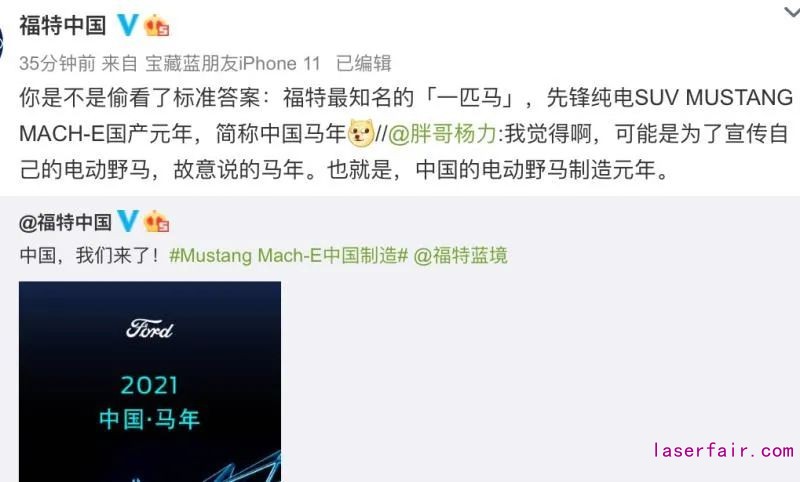 北京時(shí)間1月28日,福特中國(guó)發(fā)了一篇海報(bào),配詞“2021 中國(guó)?馬年”。被輿論認(rèn)為“古有趙高指鹿為馬,今有福特牛馬不分。橫批:銷(xiāo)量下跌?!彪S后,官方“辯解”稱(chēng),是旗下車(chē)型野馬國(guó)產(chǎn)元年。