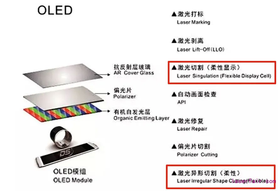 可折疊手機(jī)的屏幕采用的是柔性O(shè)LED屏,所謂的柔性屏就是指:可以自由彎曲、折疊的屏幕。柔性屏作為嶄新的領(lǐng)域,在加工過程中面臨著許多問題,對(duì)加工工藝提出了更高的要求。與傳統(tǒng)的脆性材料加工相比,OLED顯示屏由于其復(fù)雜的分層機(jī)構(gòu),在制造過程中必須以最高的精密度進(jìn)行加工,以保證質(zhì)量和良品率。