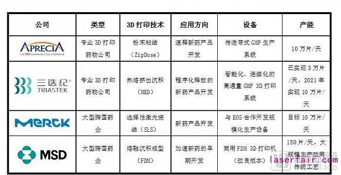 3D打印藥物產(chǎn)品商業(yè)化開發(fā)方向的公司