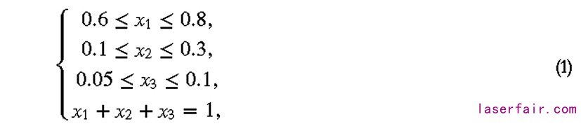 方程式(1)中的X1、X2、X3分別是鋁、硅、鎳元素的含量。因為鋁元素是三種化學(xué)元素粉末的基礎(chǔ),鑒于鋁硅粉的最佳混合比是12:1,鋁鎳粉的最佳混合比是20:1,我們將上述三種元素的邊界條件設(shè)置為鋁60%-80%,硅10%-30%,鎳5%-10%。