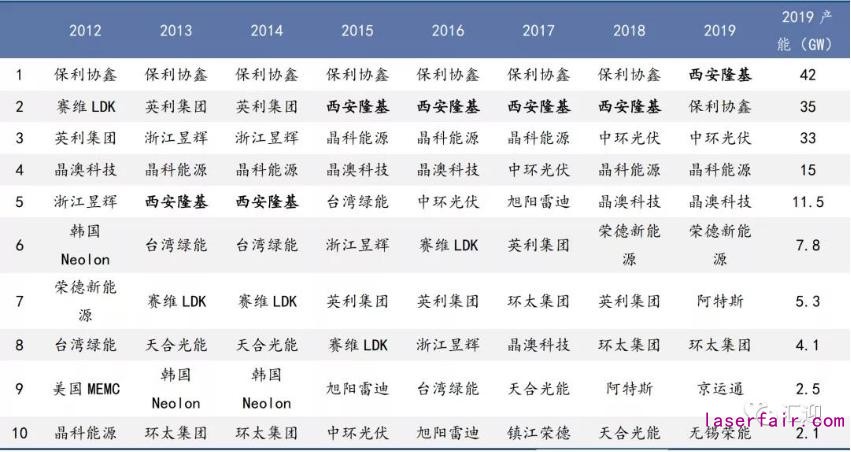 表2 歷年硅片企業(yè)排名表3 歷年光伏組件產(chǎn)量排名3.3 新興的光伏電池技術(shù)日新月異,關(guān)注引領(lǐng)未來的技術(shù)方向