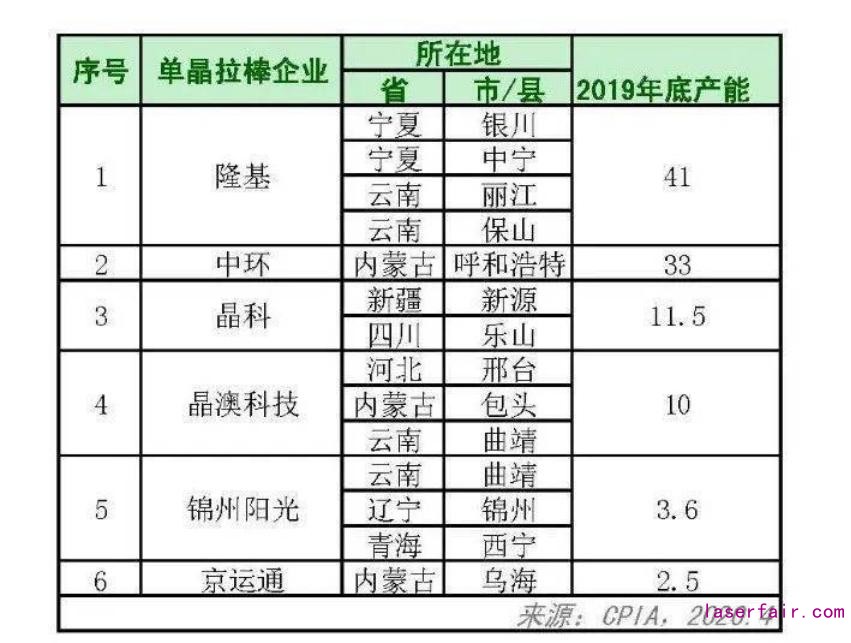 硅片生產(chǎn)環(huán)節(jié)的電耗主要來自拉單晶或多晶硅鑄錠環(huán)節(jié)。低廉的電力供應(yīng)是提高企業(yè)產(chǎn)品競(jìng)爭(zhēng)力的重要方面。因此,企業(yè)紛紛利用西部地區(qū)能源要素低廉的優(yōu)勢(shì),在當(dāng)?shù)亟ㄔO(shè)并擴(kuò)產(chǎn)單晶拉棒、切片產(chǎn)線。據(jù)統(tǒng)計(jì),2019年單晶拉棒產(chǎn)能超過100GW,其中除了晶澳科技在河北有部分拉棒產(chǎn)能外,其他產(chǎn)能均位于西部地區(qū),如內(nèi)蒙古、寧夏、云南、新疆等地。隆基、中環(huán)則在江蘇無錫、宜興等布局切片廠,貼近下游電池片制造基地(見表1)。