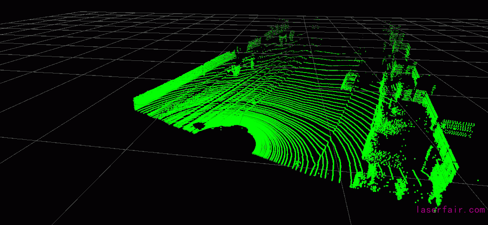 當(dāng)然,用肉眼觀察,激光雷達(dá)打出的圖像遠(yuǎn)沒有二維照片好看: