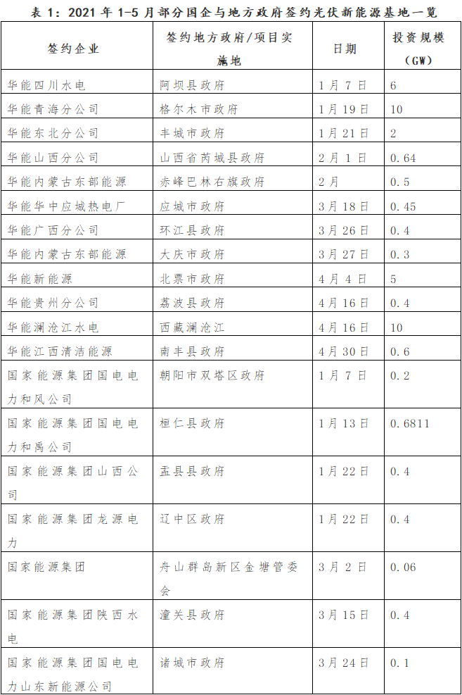 在“雙碳”目標(biāo)刺激下,各中央能源企業(yè)、地方能源國企以及地方政府對新能源發(fā)展處于持續(xù)亢奮中。幾乎每天都會見到能源國企與地方政府簽約的盛大場面和相關(guān)新聞,簽約內(nèi)容主要集中在“新能源基地”建設(shè)和新能源項目的投資,基地建設(shè)越大越震撼,其中光伏絕對是主角,小于1 GW的基地都不好意思公布出來。