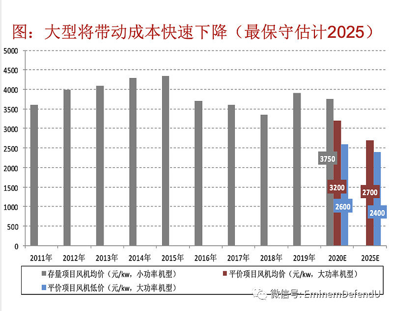 1.最保守預(yù)計(jì)十四五末期風(fēng)電整機(jī)成本有望降至1800元以下,EPC價(jià)格5000元以下;