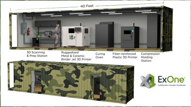 國防部似乎比以往任何時候都更有意利用3D 打印的內(nèi)包潛力。今年早些時候,美國國防后勤局與活頁夾噴氣式3D 打印機 OEM ExOne 簽訂了合同,建立了一個“移動3D 打印工廠”,士兵可以快速部署這個工廠,在戰(zhàn)場上制造備件。