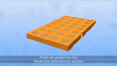 Moldjet技術(shù)具有兩個(gè)典型的步驟:首先,由噴墨打印頭噴射蠟狀聚合物實(shí)現(xiàn)模具層成型,之后將金屬膏填充入模具層,并借助刮板刮平,這兩個(gè)步驟完成后采用光照實(shí)現(xiàn)蓋層硬化。根據(jù)這兩個(gè)步驟,多層重復(fù)后實(shí)現(xiàn)模具和零件的一同成型。值得注意的是,在該打印過程中,設(shè)備內(nèi)部的高分辨率相機(jī)會監(jiān)控每一層的打印過程,如果判斷有缺陷,會針對該層再執(zhí)行一次程序。打印完的部分采用化學(xué)的方式脫模,由于之前的光照加熱,零件本身已經(jīng)有了一定強(qiáng)度,一次容易實(shí)現(xiàn)脫模。