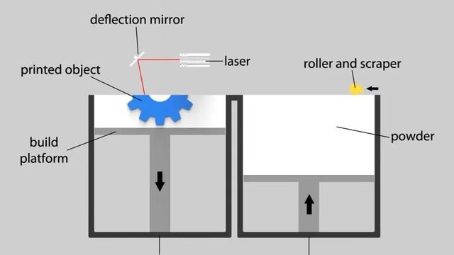 直接金屬激光燒結(jié)(DMLS):可用于幾乎任何金屬合金構(gòu)建物體。直接金屬激光燒結(jié)在要打印的表面上散布一層非常薄的金屬粉末。激光緩慢而穩(wěn)定地穿過表面以燒結(jié)這種粉末,金屬內(nèi)部顆粒融合在一起,即使沒有被加熱到完全熔化狀態(tài)。然后施加并燒結(jié)額外的粉末層,從而一次“打印”物體的一個橫截面。打印完成后,物體會慢慢冷卻,多余的粉末可以從構(gòu)建室中回收并循環(huán)使用。DMLS的主要優(yōu)點(diǎn)是它生產(chǎn)的物體沒有殘留應(yīng)力和內(nèi)部缺陷,這對于高應(yīng)力下的金屬部件(例如航空航天或汽車零件)極為重要,而主要缺點(diǎn)是非常昂貴。