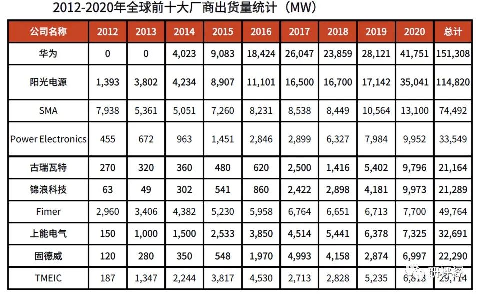 逆變器的整體格局比較穩(wěn)定,華為、陽(yáng)光電源是龍頭。