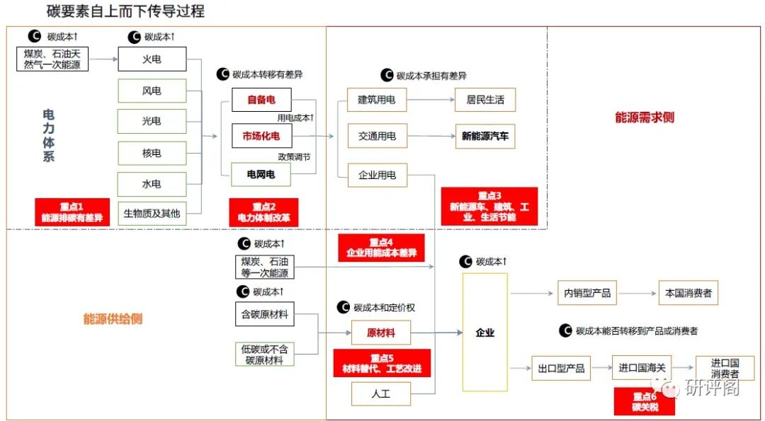 光伏的大邏輯在于能源革命,如果從“碳要素”的角度看,碳將成為重要的生產(chǎn)要素,會(huì)從上游能源側(cè)向中游制造側(cè)到下游消費(fèi)側(cè)轉(zhuǎn)移,不同經(jīng)濟(jì)體制轉(zhuǎn)移程度和政策調(diào)節(jié)的方法不同。