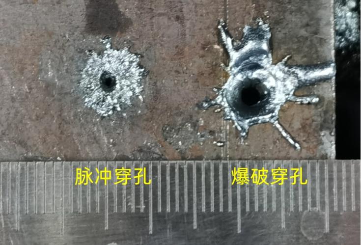 兩種穿孔方式的實(shí)際效果如下圖所示。在大多數(shù)情況下,脈沖穿孔質(zhì)量優(yōu)于爆破穿孔。