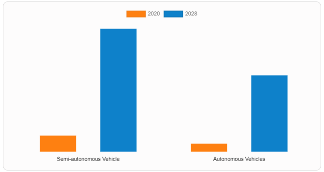 圖4:汽車激光雷達市場分為半自動駕駛和全自動駕駛汽車應用。(圖片來源:Allied Market Research)