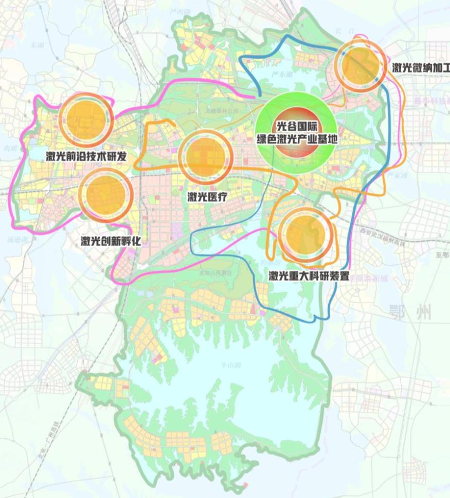 湖北東湖科學(xué)城激光產(chǎn)業(yè)“一核多點(diǎn)”布局示意圖