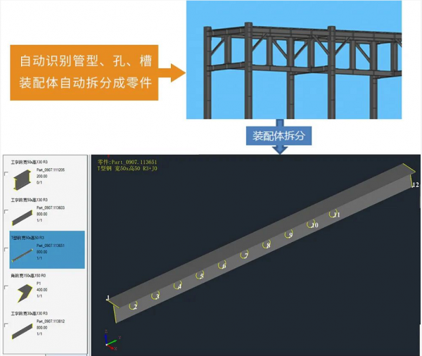 WiseCAM Tube維宏激光管材切割控制系統(tǒng)支持igs、stp文件的導(dǎo)入。用戶可直接將鋼結(jié)構(gòu)裝配體導(dǎo)入軟件,軟件自動(dòng)識(shí)別出其中的鋼材零件,無(wú)需人工拆數(shù)模,方便快捷。