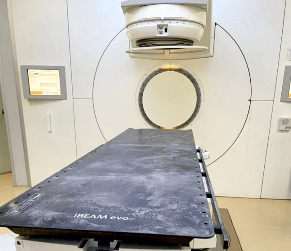 △該醫(yī)院安裝中的放療系統(tǒng)和碳纖維治療床