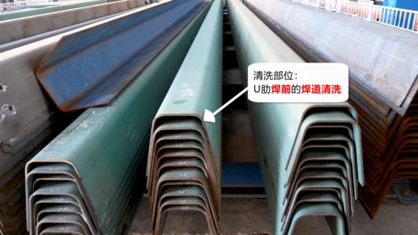 一座幾十萬噸規(guī)模的橋梁至少需要上百萬塊U肋板單元,相當(dāng)于橋梁的“骨骼”。U肋待焊部位的清洗質(zhì)量對后續(xù)加工環(huán)節(jié)——正交異性橋面板的焊接質(zhì)量有著關(guān)鍵性作用,也是橋梁使用壽命、安全性、抗風(fēng)與抗震等性能的重要影響因素。