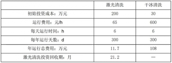 激光清洗對(duì)比干冰清洗,運(yùn)行成本可忽略不計(jì)