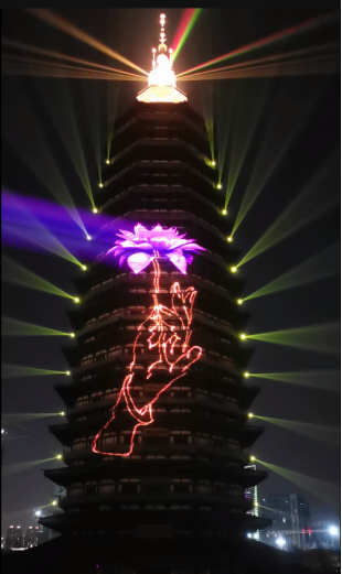 常州天寧寺塔,通過“真激光”投影技術(shù)和全景投影技術(shù),將佛陀“拈花微笑”的典故展現(xiàn)得淋漓盡致。配合光影講人文故事,已經(jīng)成為新的時(shí)尚,成為博物館、歷史遺跡等向大眾展現(xiàn)歷史文化、人文風(fēng)情、科學(xué)技術(shù)的新載體,讓歷史文化從“展覽臺(tái)”走向大眾。