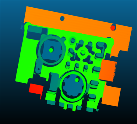 同樣,之前3C行業(yè)電池表面缺陷檢測,如劃痕、異物、鼓包等,也都是采用人工檢測手段,效率低,無法實現(xiàn)非接觸及自動化測量,而待測件尺寸小,對操作者水平要求也高,無法實現(xiàn)批量測試。中科行智利用高精度3D相機,通用視覺平臺GIVS,實現(xiàn)非接觸式自動化測量,節(jié)省人力成本,提高效率,降低測量難度。高精度點云處理算法,可實現(xiàn)精確檢測。對于該項目檢測,可直接利用深度圖進行檢測,也能有效降低項目實施的復(fù)雜度。