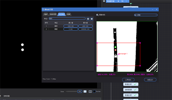 4、blob分析,提取缺陷位置,篩選寬和長2mm以上的缺陷。