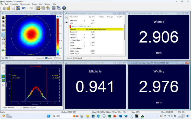圖-5 公大激光1000W單模連續(xù)綠光光束質(zhì)量測(cè)試 M平方=1.07