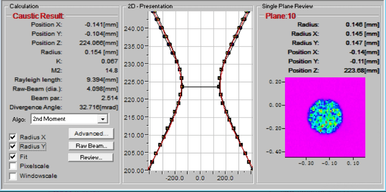 圖-8 3000W多模連續(xù)綠光光束質(zhì)量測(cè)試 M平方=14.8