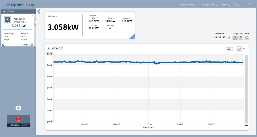 圖-7 3000W多模光纖綠光24小時(shí)功率穩(wěn)定性