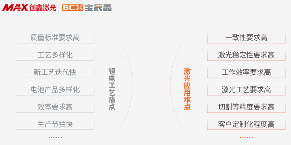 當(dāng)前,全球新能源汽車產(chǎn)業(yè)已進(jìn)入加速發(fā)展新階段,對動力電池技術(shù)創(chuàng)新、質(zhì)量性能等提出更高的要求。接下來,動力電池行業(yè)將邁入從“有沒有”到“好不好”的新階段。動力電池產(chǎn)業(yè)的前半程,已經(jīng)可以滿足市場的基礎(chǔ)需求。動力電池產(chǎn)業(yè)的后半程,是引領(lǐng)市場需求,從有到好,與產(chǎn)業(yè)一起邁向高質(zhì)量躍升發(fā)展的新階段。要在動力電池的生產(chǎn)制造中實現(xiàn)高標(biāo)準(zhǔn)制造,無論是鋰電工藝本身還是激光應(yīng)用落地都存在著許多亟需解決的問題:動力電池的質(zhì)量標(biāo)準(zhǔn)要求高,工藝多樣化,新工藝迭代快,電池產(chǎn)品多樣化等,都給電池生產(chǎn)帶來了諸多挑戰(zhàn)。在激光應(yīng)用落地過程中,一致性、穩(wěn)定性、效率、精度等要求高也是工藝難點。