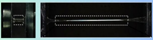 “超級橡皮筋”拉伸前后對比圖。左圖為拉伸前,右圖為拉伸后。