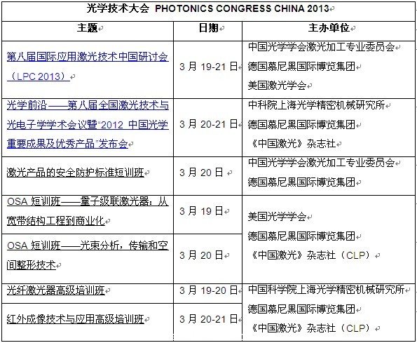 2013年光學技術大會最新日程發(fā)布——2013年慕尼黑上海光博會同期活動