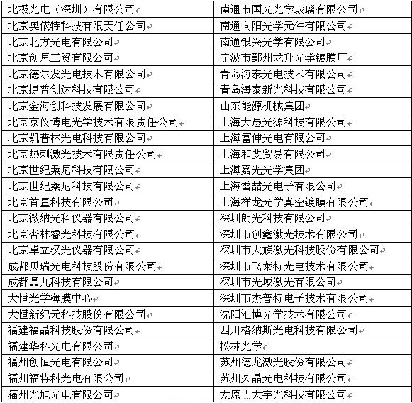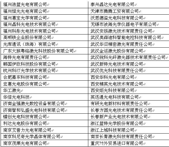 LASER World of PHOTONICS2013部分中國企業(yè)名單: