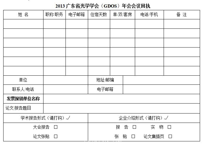 2013廣東省光學(xué)學(xué)會(GDOS)年會會議回執(zhí)