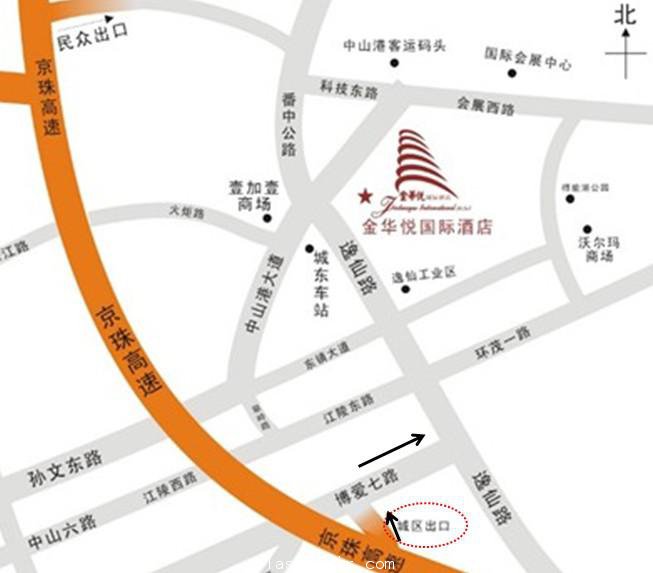 長途汽車:中山城東汽車站下(電話:0760-85594828)----對面即為金華悅國際酒店;