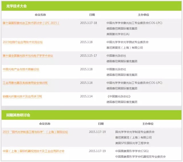 作為亞洲最大的激光、光學(xué)、光電行業(yè)盛會,2015年慕尼黑上海光博會將于3 月17~19日在上海新國際博覽中心舉辦,此次光博會也將迎來其十周年誕辰。