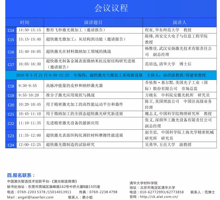 “ALAT 2016中國超快激光與微納制造大會”將包含4個主題: