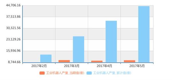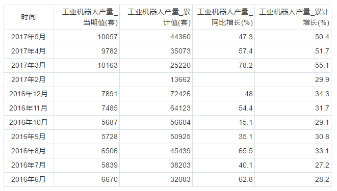 2016年6月至2017年5月我國工業(yè)機器人產(chǎn)量統(tǒng)計表