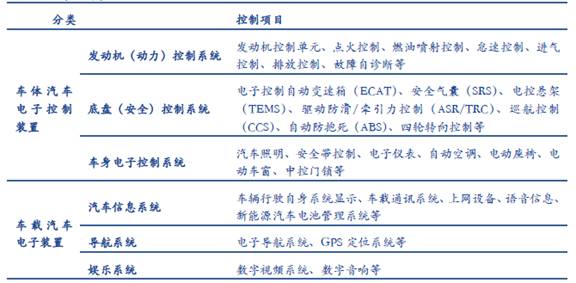 汽車電子產(chǎn)品分類(來源:Google)