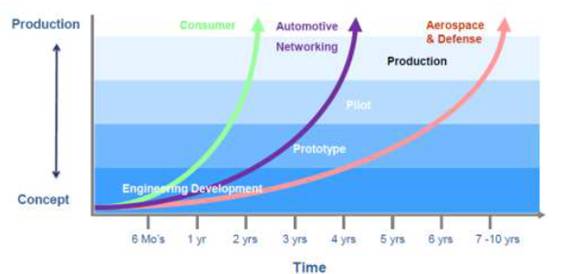 消費(fèi)電子/汽車/航空產(chǎn)品認(rèn)證周期表(來源:TTM)