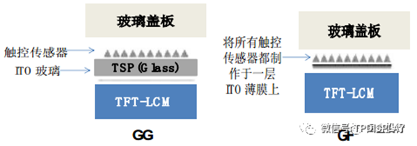 圖3:玻璃方式的外掛觸控技術(shù)GG(左)與薄膜方式的外掛觸控技術(shù)GF(右)