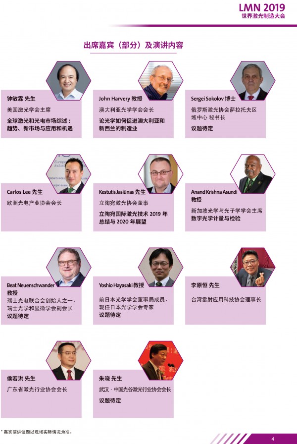 附:LMN2019世界激光制造大會主會場演講嘉賓(201958-深圳會展中心)(收費)