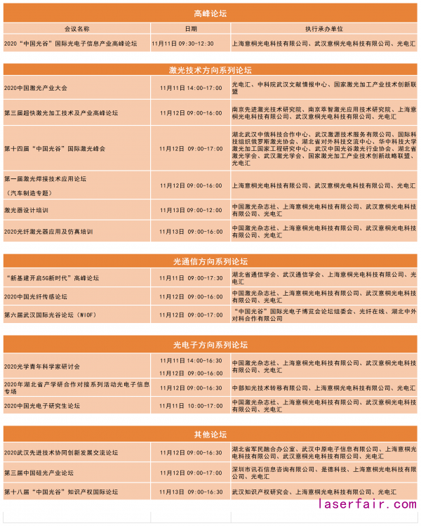 2020武漢光博會(huì)11月11-13日·中國(guó)光谷科技會(huì)展中心開放時(shí)間:11月11日8:30-17:0011月12日 9:00-17:0011月13日 9:00-15:30會(huì)館地點(diǎn):湖北省武漢市洪山區(qū)高新大道787號(hào)溫...