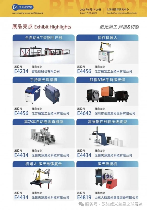 E4工業(yè)激光館6月17-20日,第二十八屆北京·埃森焊接與切割展覽會(huì)將在上海新國(guó)際博覽中心盛大開幕。本屆展會(huì)規(guī)模突破8萬平方米,較上屆增長(zhǎng)28.8%,吸引全球800余家參展企...