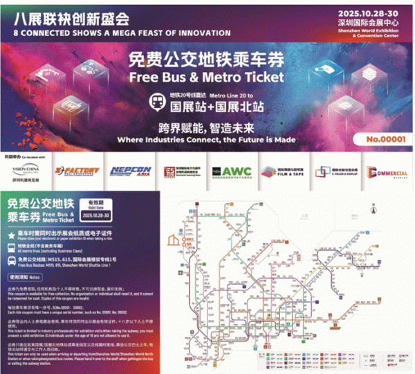 主辦方在開展期間特別為前來展會的參展商和觀眾提供免費(fèi)公交地鐵乘車券,憑您的“2025亞洲工業(yè)科技展 ”任一展會的展商證或參觀證領(lǐng)取,每人每天限領(lǐng)2張,當(dāng)日領(lǐng)完為止。