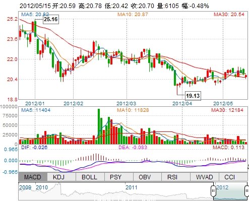 今 開: 20.59 成交量: 6104手 振 幅: 1.73% 最 高: 20.78 成交額: 1253.97萬 換手率: 0.51% 最 低: 20.42 總市值: 88.43億 市凈率: 6.23 昨 收: 20.80 流通市...