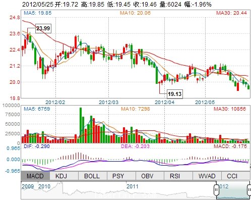 今 開: 19.72 成交量: 6023手 振 幅: 2.02% 最 高: 19.85 成交額: 1179.38萬 換手率: 0.50% 最 低: 19.45 總市值: 83.13億 市凈率: 5.86 昨 收: 19.85 流通市...