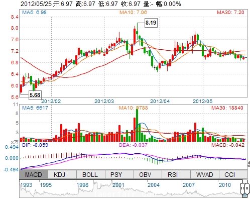 昨 收: 6.97 流通市值: 12.11億 市盈率TTM -224.17