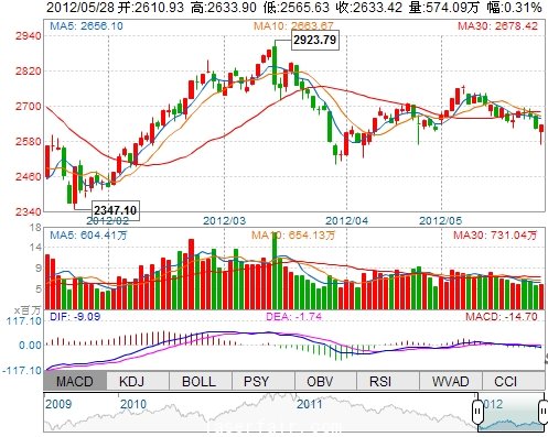 今 開(kāi): 2610.93 最 高: 2633.90 最 低: 2565.63 振 幅: 2.60% 昨 收: 2625.19 成交量: 5740861手 成交額: 704864.13萬(wàn) 換手率: --